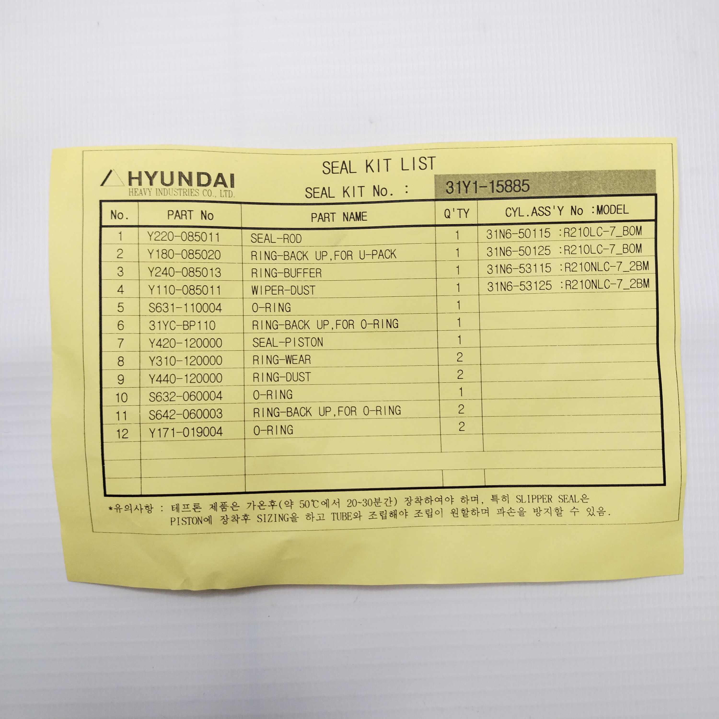 Ремкомплект гидроцилиндра 31Y1-15885 для экскаватора. Производитель Hyundai. Применяется для модели R2000W7A, R210NLC-7, R2000W-7, R200W-7, R2000W-7A, R200W-7A, R210LC-7A, R210/220LC-7H, R210LC-7, R210NLC-7A, R2200LC-7, R2200LC-7A, R210LC-7H, R220LC-7, R210-7, R210-7V, R215, R220LC-7. Сделайте заказ на нашем сайте, Вы приобретете высококачественные запасные части. Заказ доставим по России транспортной компанией или курьером. Для уточнения свяжитесь со специалистом НоваПартс-Сервис.